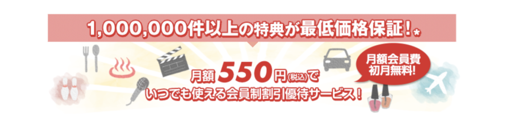 映画の割引やレジャー、旅行の割引など優待が豊富なのでお試し期間中にあらゆる優待を使い倒して退会してしまうのもアリです。