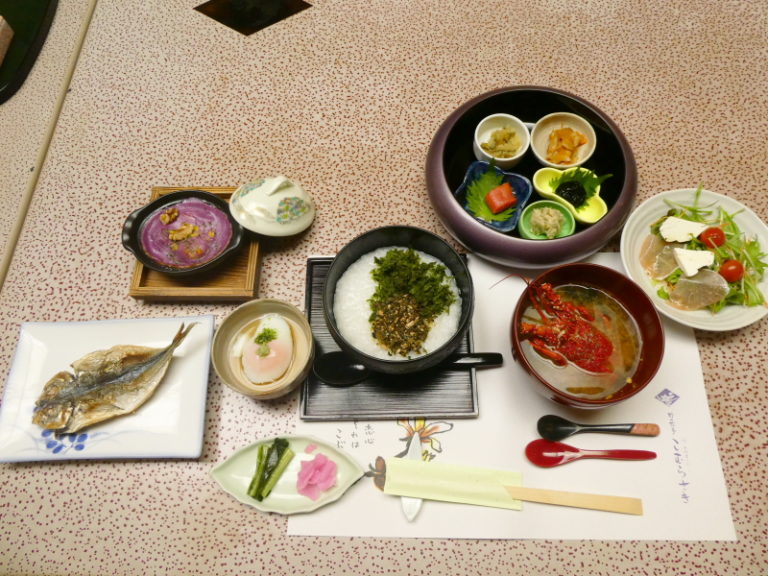 この旅は2泊3日で前日に宿泊した伊豆高原のオーベルジュ・ミヨーが洋朝食だったこともあり、迷わず和食を選びました。