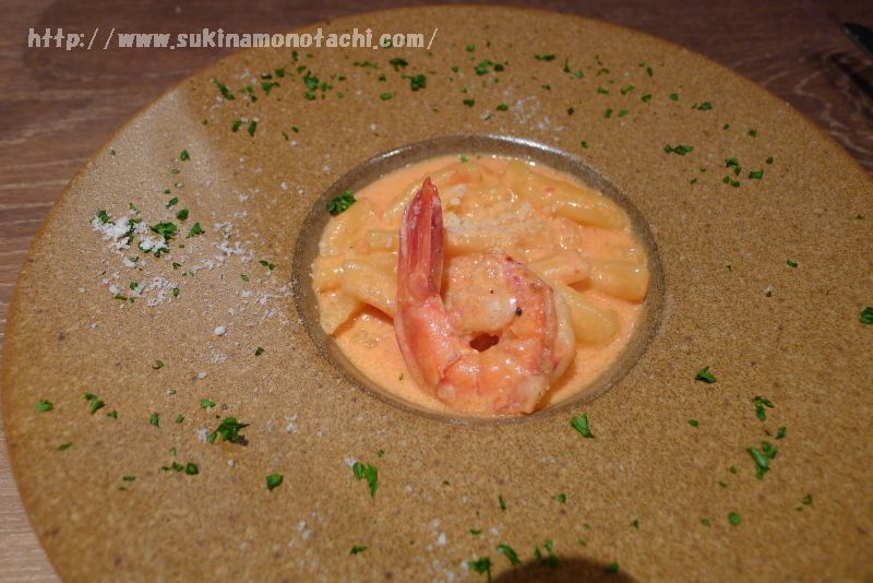 モッチモチのショートパスタに大きめの海老。まろやかなトマトクリームソースがしっかり絡んで美味です!