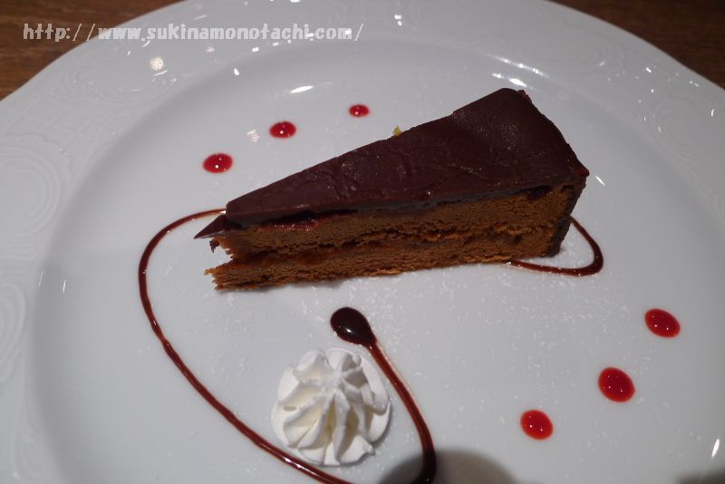 本日のデザートはザッハトルテでした。ラントマンで食べたザッハトルテよりも甘さは控えめ。