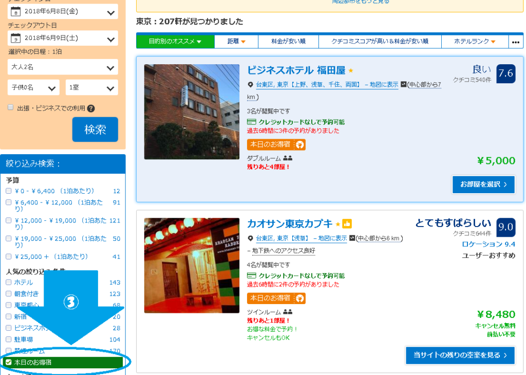 ▽当日・直前割引なら格安宿が見つかります。