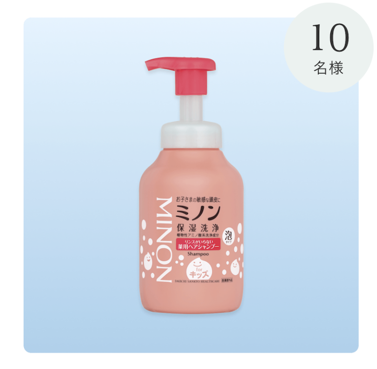 今月のプレゼントは「ミノンリンスがいらない薬用ヘアシャンプー[医薬部外品]」です。