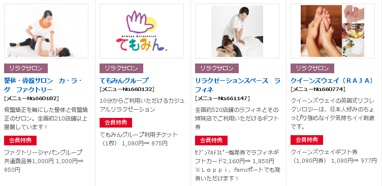 デイリープラスではリラクゼーション関連サービス以外にも以下のような優待が利用できます。