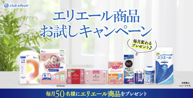 クラブエリエール会員限定プレゼントキャンペーン。エリエールの商品が月替りで当たるチャンスです。