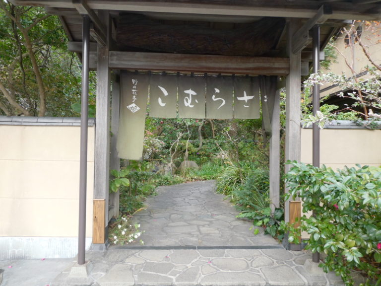 駅から少し歩くと、すぐに『野の花亭こむらさき』があります。のれんがかかっているので見つけやすいです。