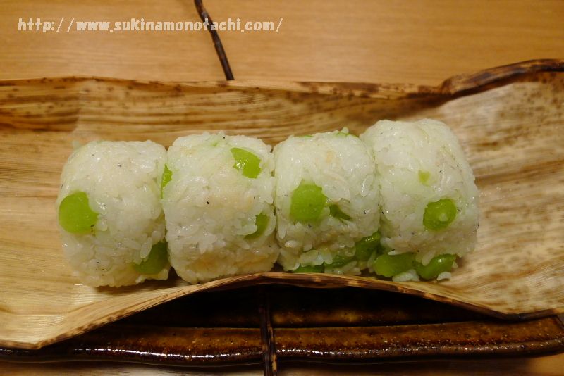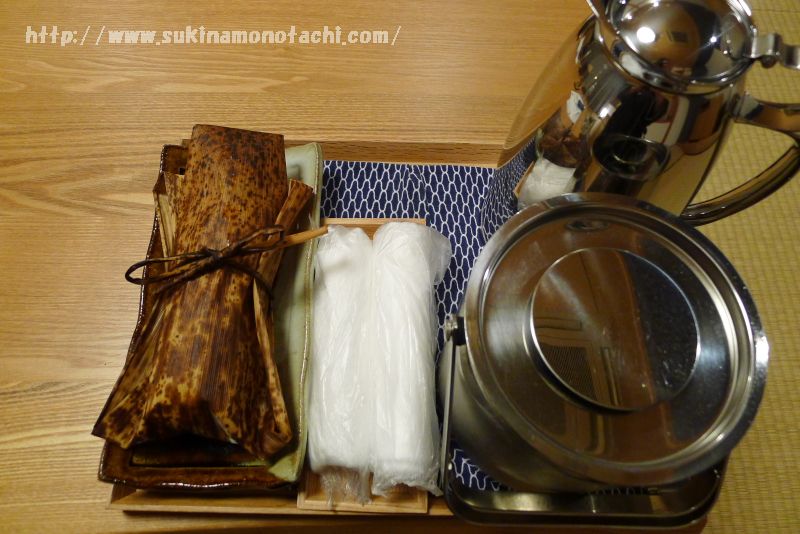 余った炊き込みご飯はおにぎりにしてくれ、冷たい水、氷、おしぼりとともにお部屋にお届けしてくれました。