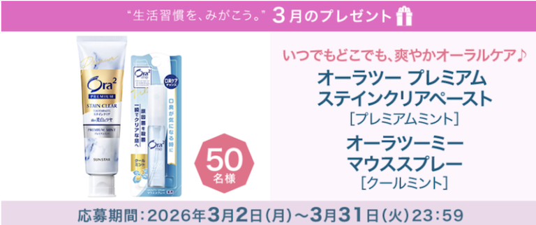 白い歯と爽やかな息をケアする2つのアイテムをセットでプレゼント。新しい環境で人と話す機会が増える春にお口のケアをしっかりと。