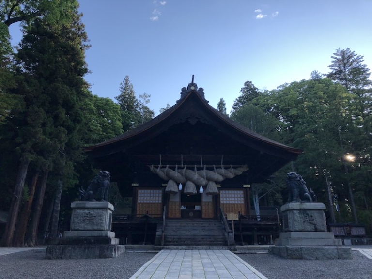 宿泊した宿が下社秋宮から徒歩圏内で、宿の人に教えてもらった「朝御饌祭(あさみけさい)」の見学へ。早朝の境内は観光客はおらず、地元の方が2人ほどいただけでとても静かでした。