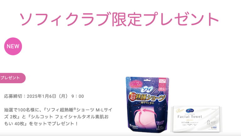 【ユニ・チャーム】ソフィクラブ限定プレゼントキャンペーン(終了)