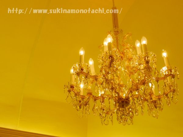 大きな天窓から明るい陽射しが差し込み、豪奢なシャンデリアが下がっています。
