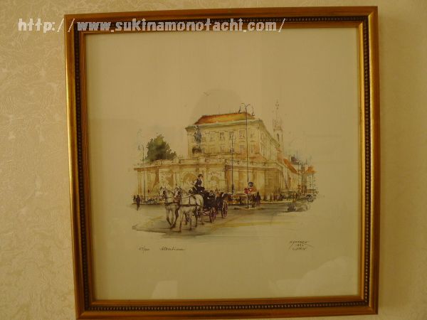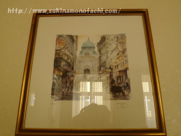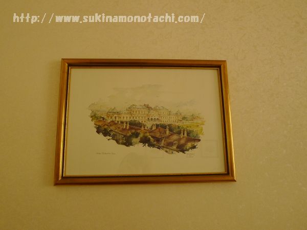 壁にはウィーンの風景を描いた水彩画がいくつも飾られていました。