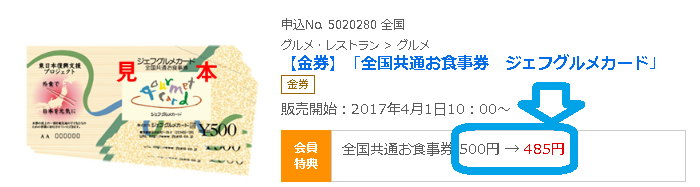 1000円分のジェフグルメカードを、4%オフの960円で購入すると…