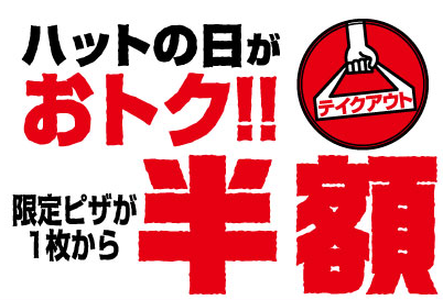 「ハットの日」は店頭持ち帰りにすると、お得になる日で、対象のピザが1枚から半額になります。