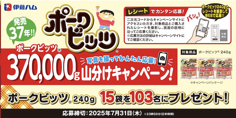 【伊藤ハム】ポークビッツ発売37年プレゼントキャンペーン(〜2025/7/31)