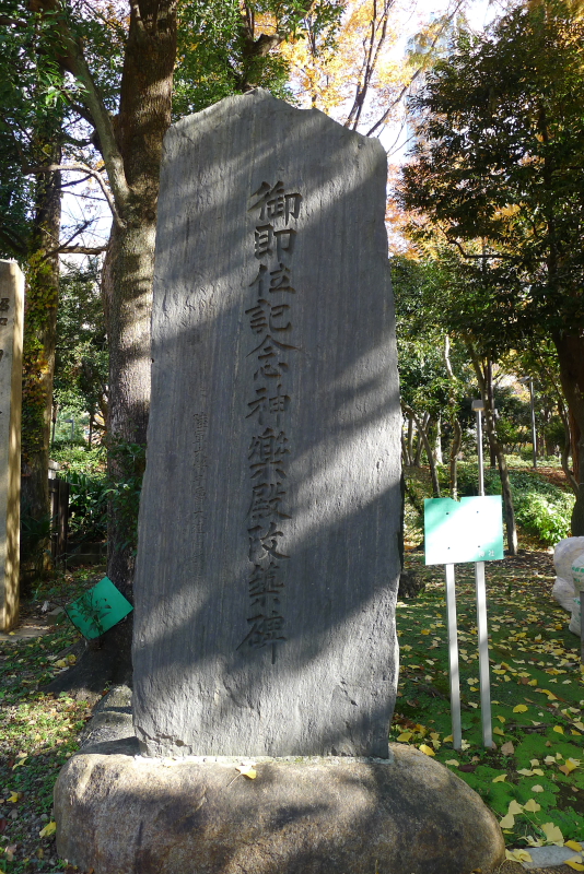 十二社の碑は十社の池が江戸近郊の景勝地であることを記念して建てられた碑で、嘉永4年(1851年)3月に建てられました。(下記写真の左側の碑です)